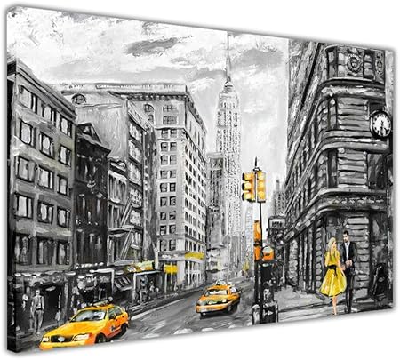 Peinture à l'huile jaune New York sur toile encadrée - Impression murale - Noir et blanc - Format A4 - 30 x 20 cm: Amazon.fr: Cuisine & Maison